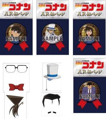同時に、名探偵コナンAR缶バッジも発売します。缶バッジのイラスト部分を専用アプリで読み込むことでスマホ画面内にキャラクター画像が表示され、コナンなりきり写真が撮影できます。SNSへドンドン投稿しよう!